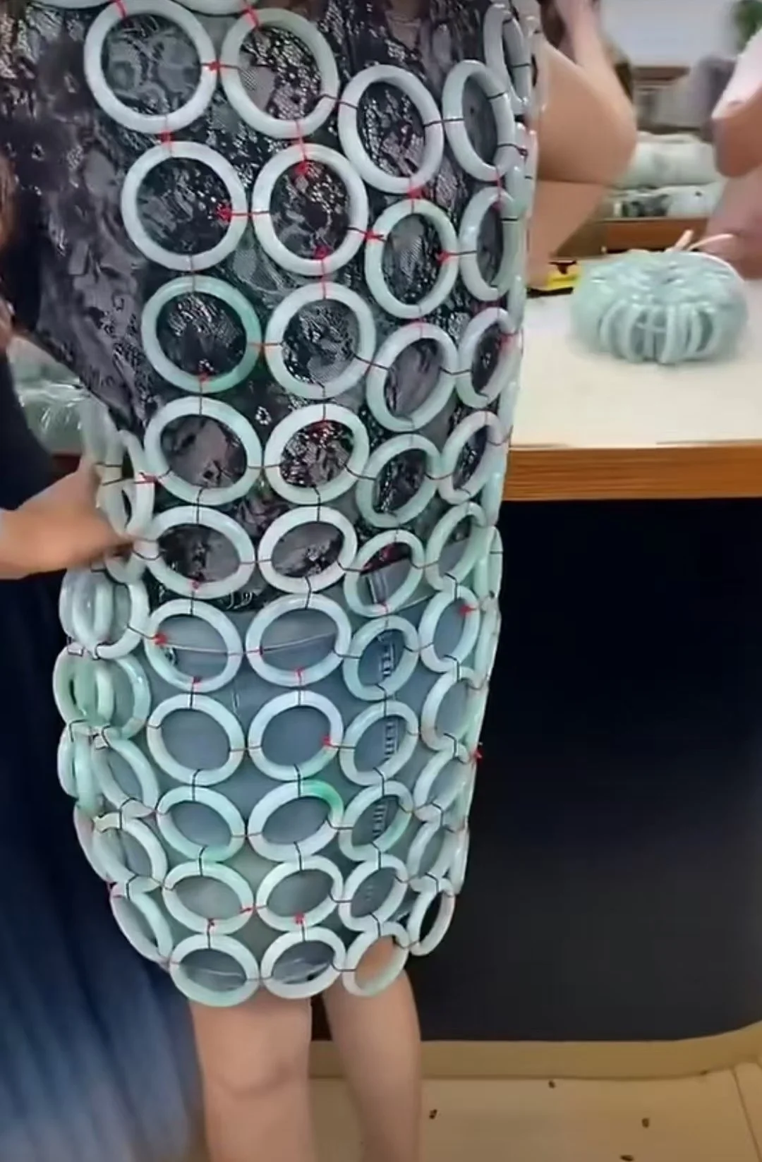 Jade bangles are very popular in China. But this young woman shopping in a bangle store has perhaps taken her appreciation of jadeite to another level.