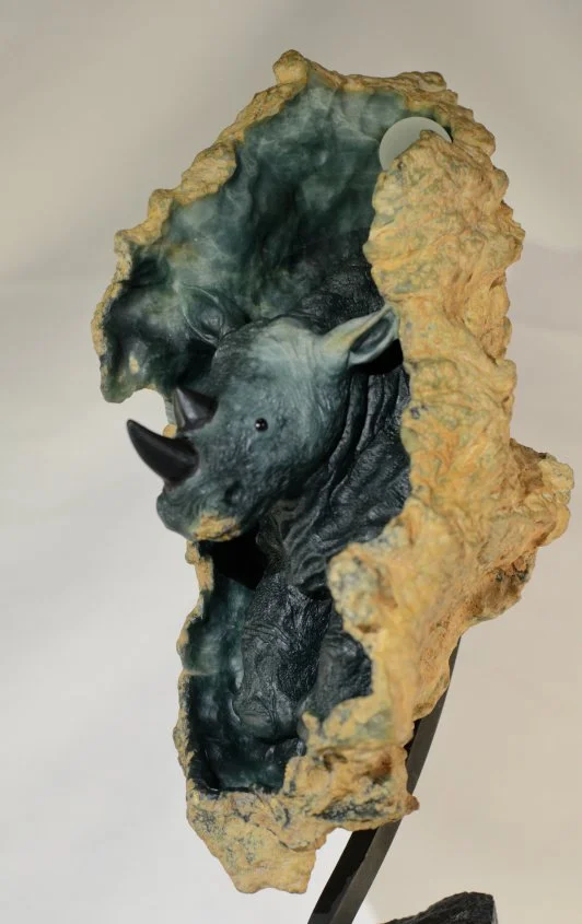 I was honoured to be asked to judge the carvings that were entered by artists for the Second Latin American Jade Congress held in Guatemala. This was the winning carving by one of my favourite craftsmen, Adan Pilicastro. His choice of jade, the use of the rind, the skill involved all point to a master carver. Learn more at www.jadefiend.com