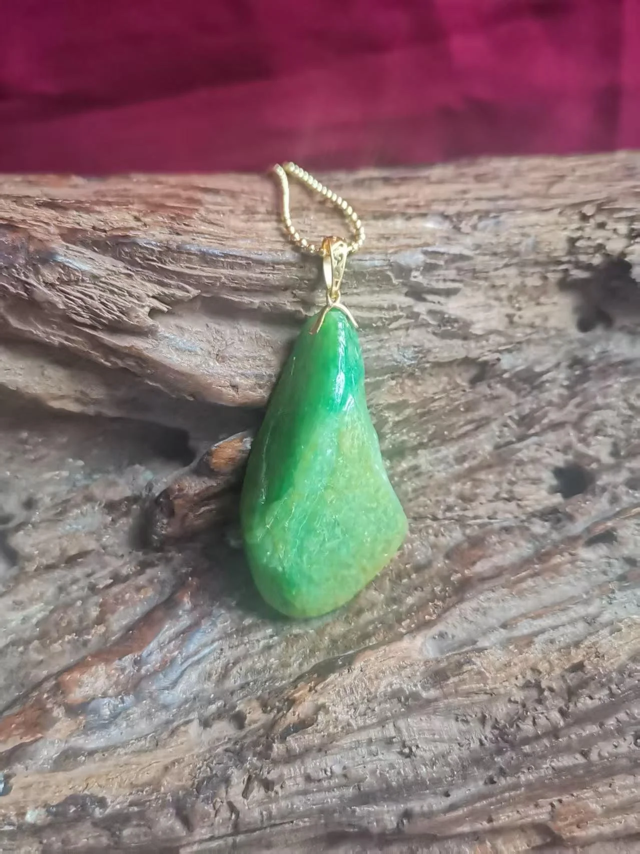 It isn’t often that I come across a piece of jadeite that is so stunning in colour that it needs no enhancement. The green and gold in this piece of Huángjiālǜ jadeite is so vibrant I had no need to carve it. I just sanded it, polished it and added an 18k gold clasp. A one off piece for someone who truly appreciates the Stone of Heaven. Learn more HERE