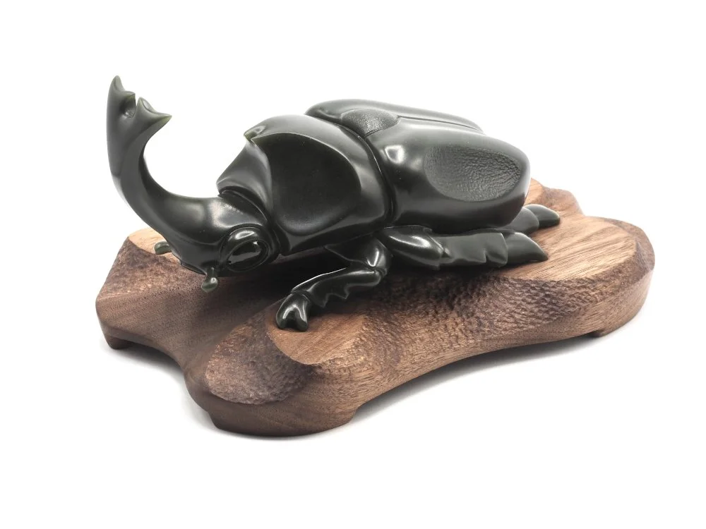 Three jade carvers from the West won gold medals in this year’s international jade exhibition in Suzhou, China. It was a pleasure to meet a very grounded bunch of artists. They all had a deep knowledge of stone and were very switched on. The introduction of AI, translation and ride hailing apps, along with accessible GPS made it far easier for them to get around than previous groups who’ve entered this competition. New friends were made. Old acquaintances renewed. A great time was had by all. These are two of my favourite pieces from this year’s exhibition. One by a Chinese artist, who did little more than shape the stone. The other by Shane Zach from Wisconsin, which is more of a sculpture for which he won gold.