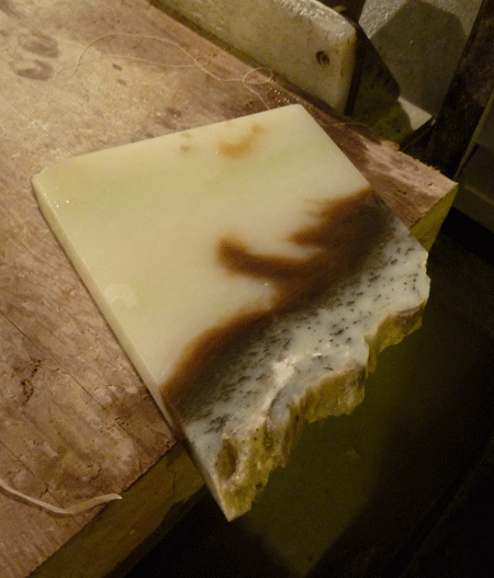 The slab I acquired was cut from a larger stone. It took a whole day to find a slab good enough for the bangle.