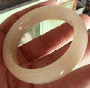 A half kilo stone of the best Hetian river jade large enough to make a bangle will cost more than $50,000 USD. It is almost impossible to find a stone like this. Usually a larger stone has to be bought at even greater cost and a piece cut from it to make the bangle.