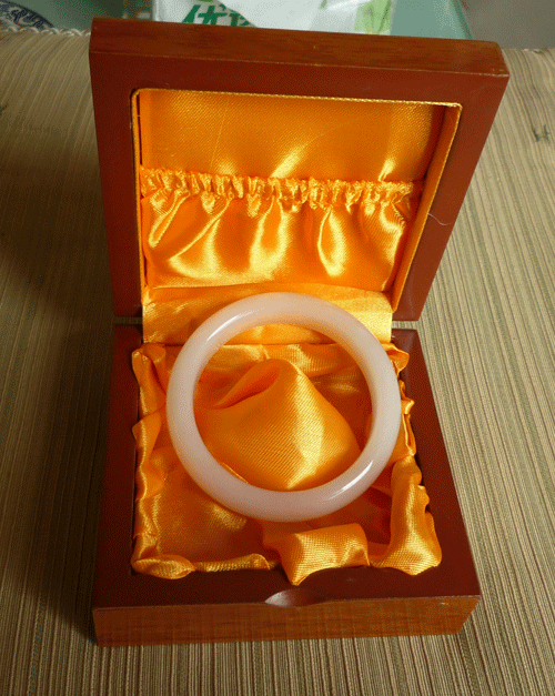 The final touch is presentation. It doesn't matter how good the jade is, it has to be noticed. I used a beautiful satin lined wooden box to showcase this bangle.