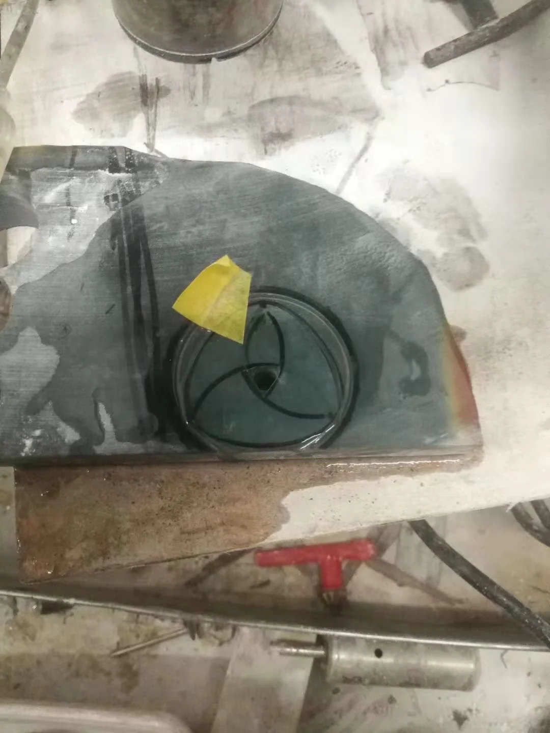 When I am reasonably happy that the tool marks are out and the jade is ready for polishing I double check by mixing a combination of 400 and 600 grit silicon carbide powder with a little olive oil and rub it deep into the jade with the suede side of a piece of leather.I find this helps identify any bumps and divots I have missed. As you can see from this photo its a very necessary part of the process for me. In this case it has highlighted some places I haven’t dealt with properly. I like to use this process because it saves discovering these flaws after polishing which means having to start the sanding and polishing process all over again.
