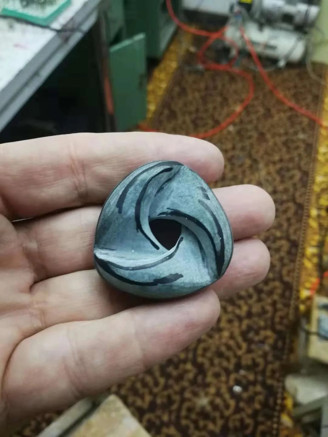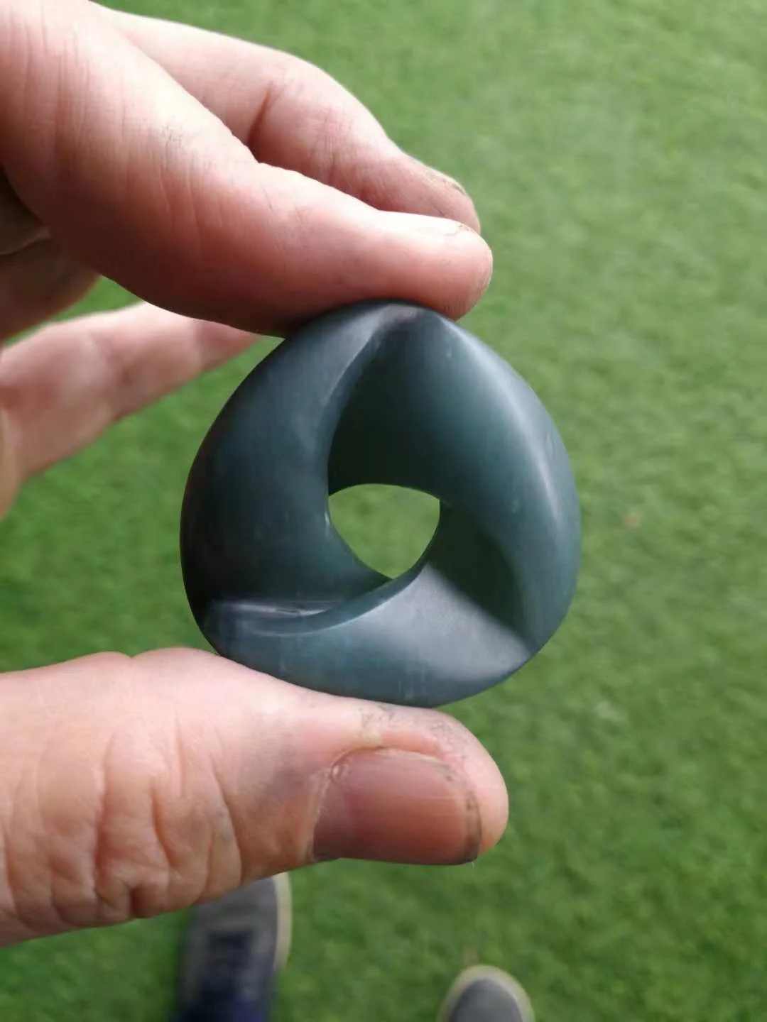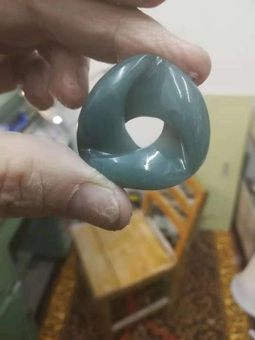 The Triple Mobius, first carved in jade by the great Donn Salt, is very popular in China. Like customers in the West, Chinese people like it made from a nice clean jade with a uniform colour and translucency. Unlike most Western customers they do not like it to be carved too thin. The design is important to them but their first concern is the quality and value of the jade. The finest jade is bought by the gram because it is so expensive. So the less jade that is removed the better. If you begin with 50gs of rough stone and end up with 30g of polished jade that is far better than ending up with 20g. The finished piece weighing 30g will have 50% more value than a pendant weighing 20g.