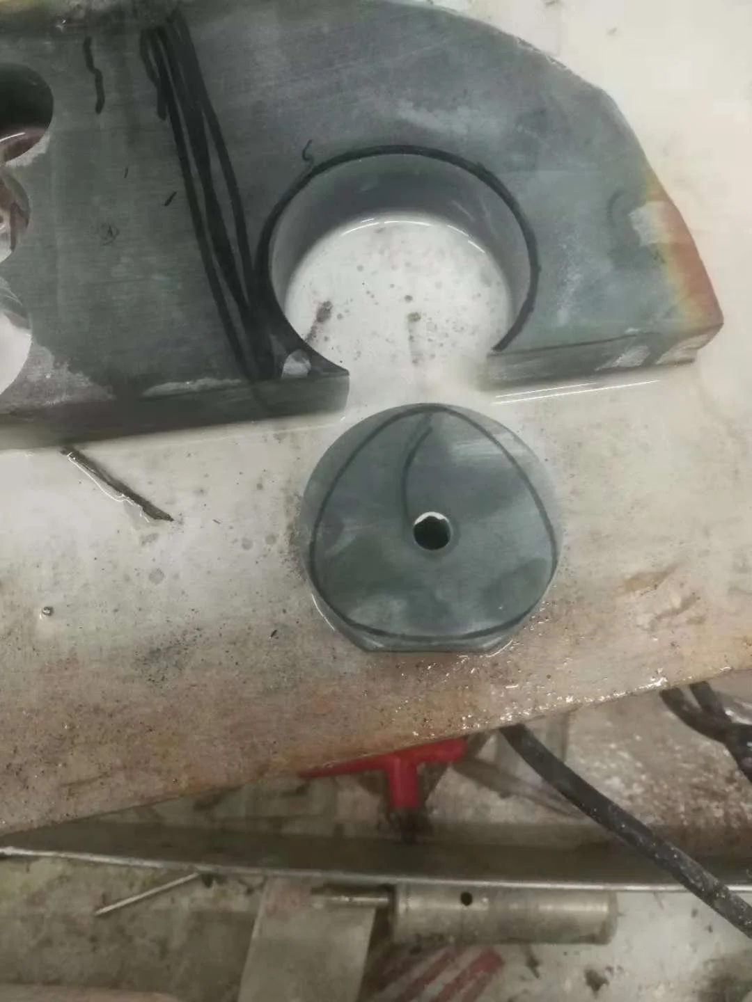Some people use a saw to cut out a rough outline of the preform. I prefer to use a drill press to core the stone. So if I am crafting a 40mm mobius then I can use exactly the right size core drill for the jade. If I fix the rough jade securely I can also switch to a smaller core drill, without disturbing the stone I am working on, to create the central negative space in the mobius. The great advantage of this is I can make sure the central hole is in the exact centre of the piece. I end up with a very rough preform which then needs to be shaped using sintered wheels.