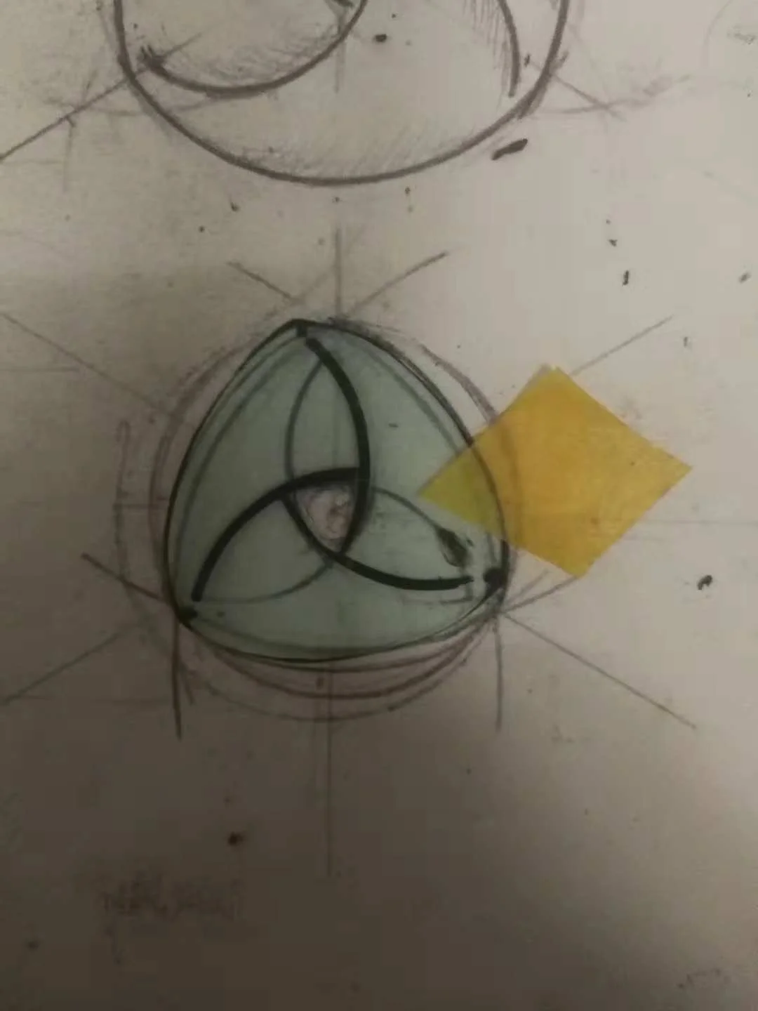 After I have drawn the design in my sketchbook I then create a template. For me a template is extremely simple. I just trace the outline of the Triple Mobius onto a piece of clear flexible plastic and cut out the shape with scissors and a craft knife.